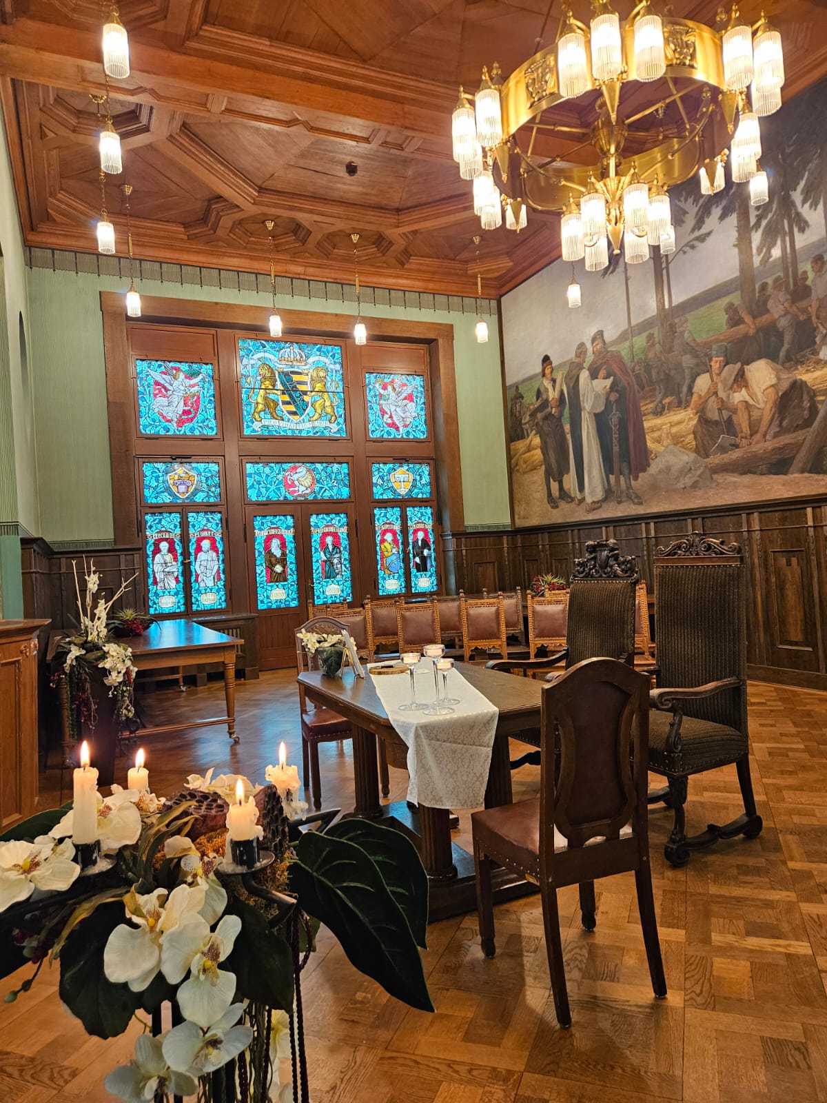 Die Platzkapazität in unserem historischen Trausaal reicht für bis zu 70 Personen aus.
