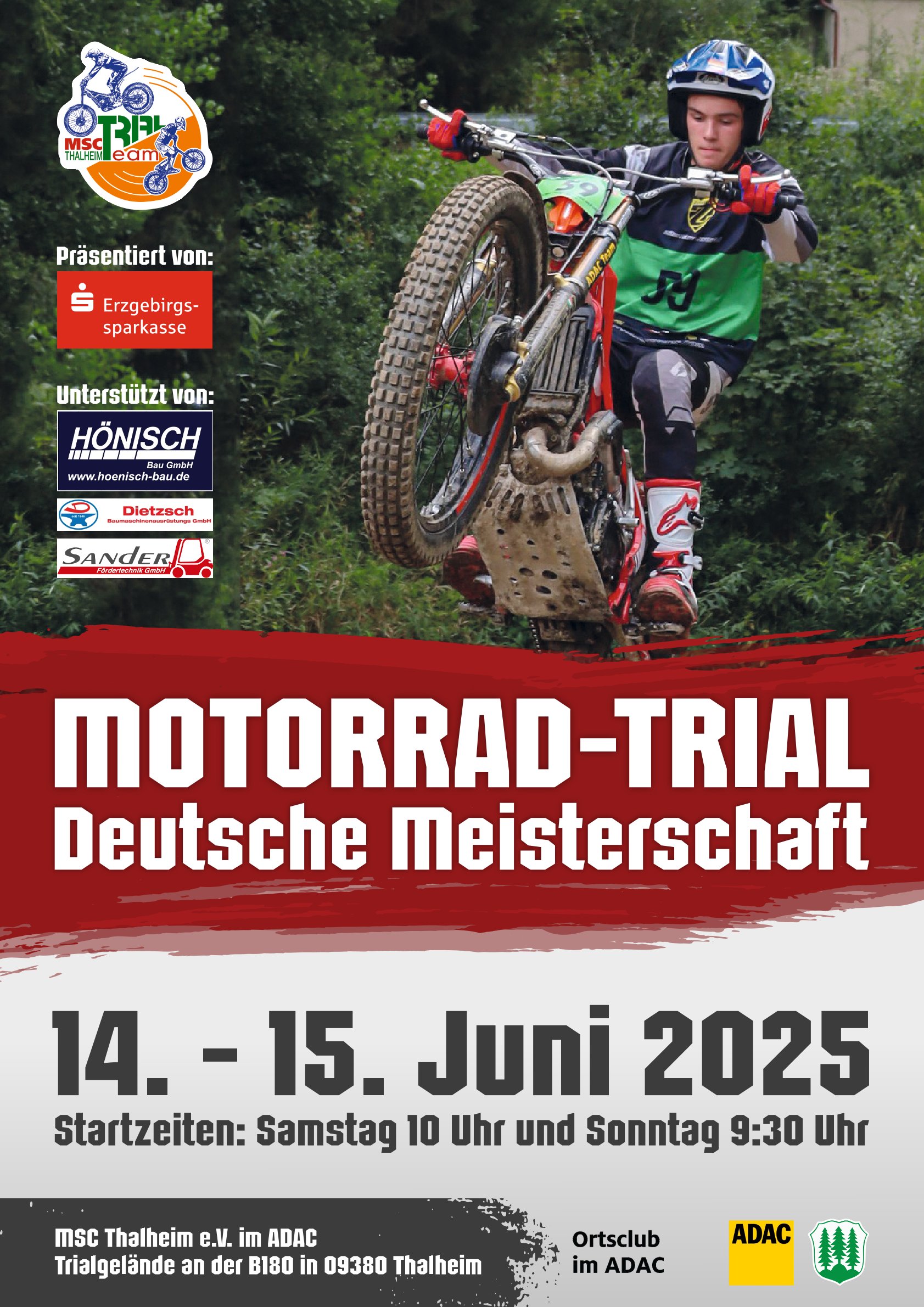 am 14. und 15. Juni, jeweils von 08:00 bis 17:00 Uhr, wird die Stollberger Straße (B 180) sowie der Eisenweg aufgrund der Deutschen Meisterschaft im Motorradtrial voll gesperrt sein.